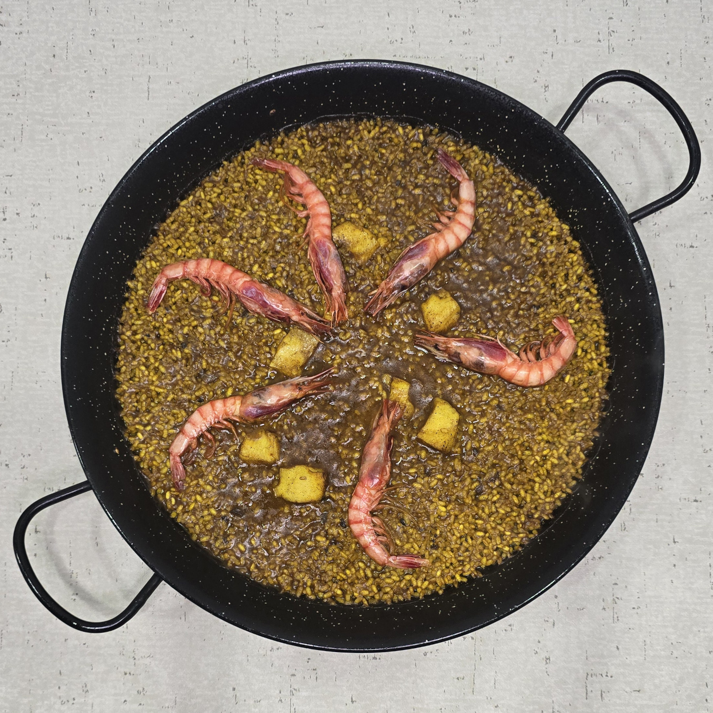 Arroz de gamba roja y merluza